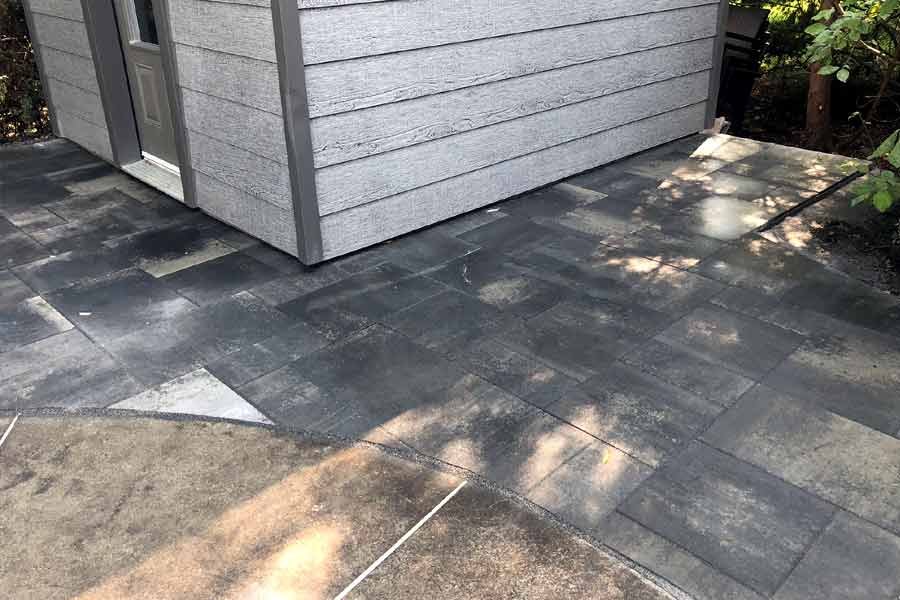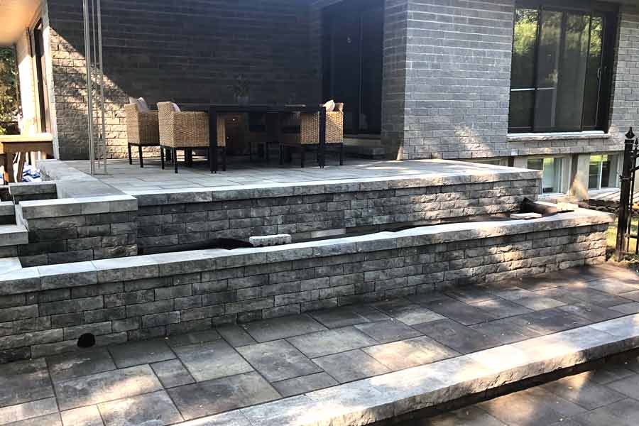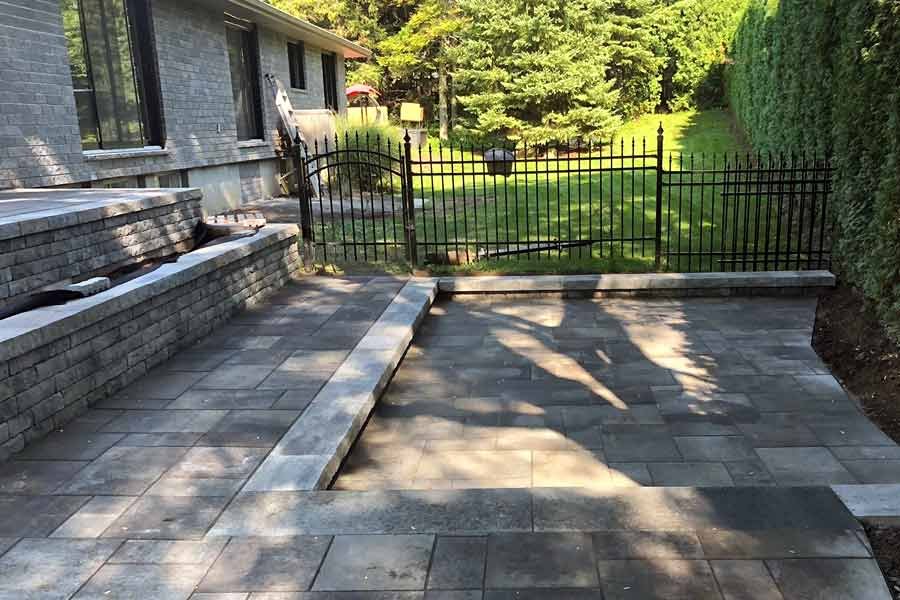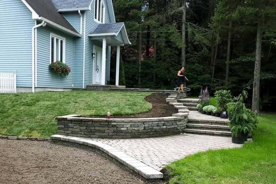Travaux de pavé uni et aménagement paysager.